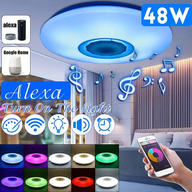 Lowered 48W Ceiling Light Dimmable Music bluetooth Speaker Down Lamp APP Remote And Voice Control Multi Color AC110-260V Indoor Bedroom