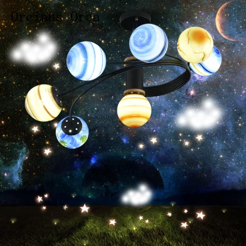 On Sale Cartoon Creative Planet ceiling lamp Boys and Girls Bedroom Children's Room Lighting American LED Planetary ceiling lamp