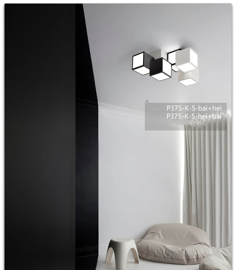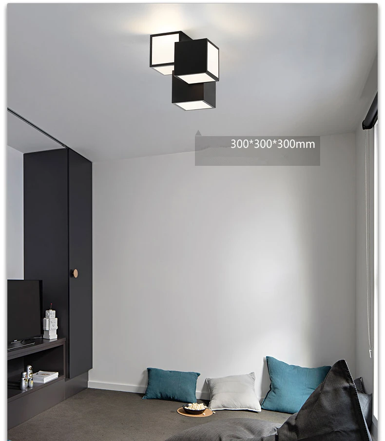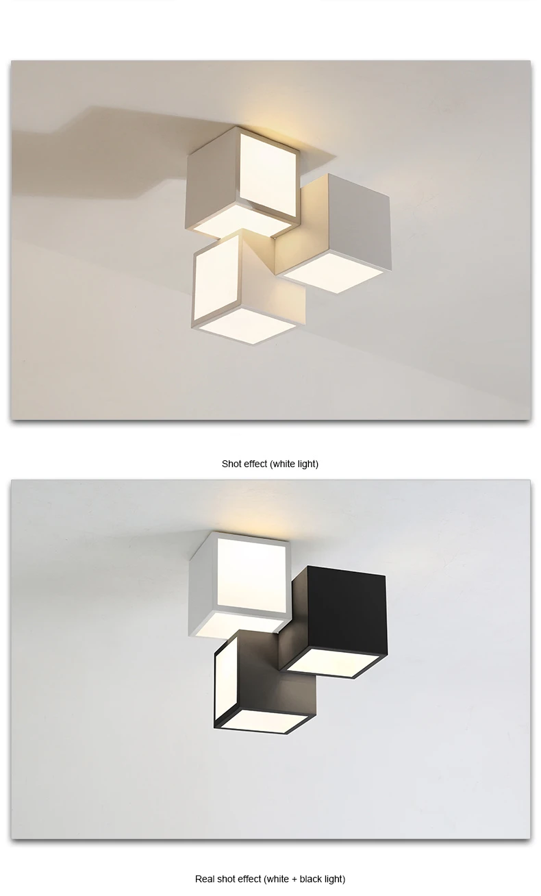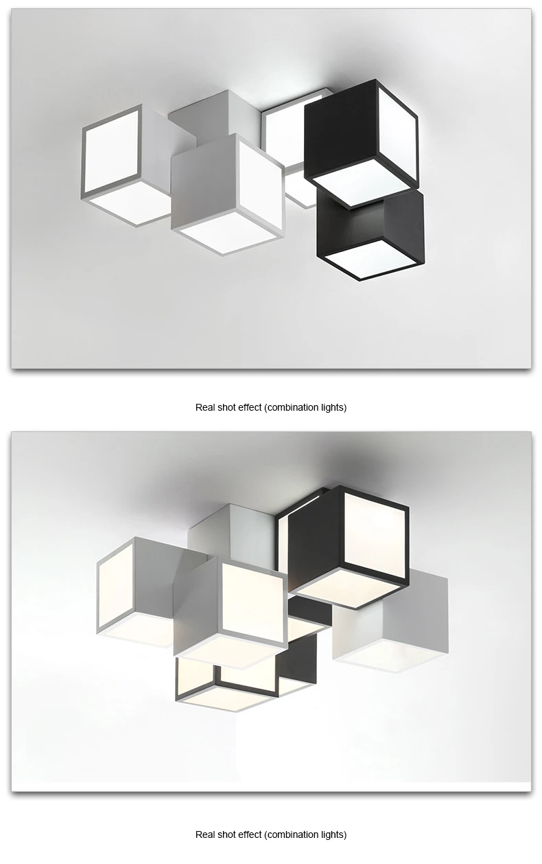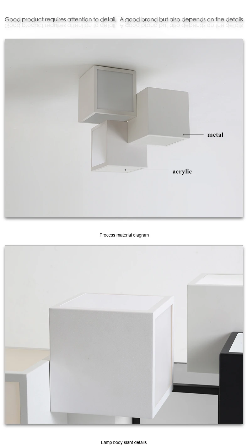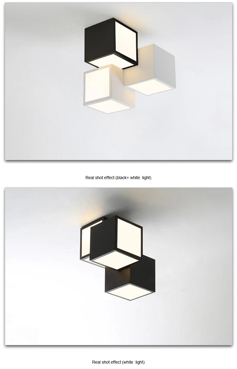 Name: Modern Creative 3 Cubes Light Led Luminaria Ceiling Light Paint White / Black Metal Remote Control Dimmable Led Ceiling Lamp;