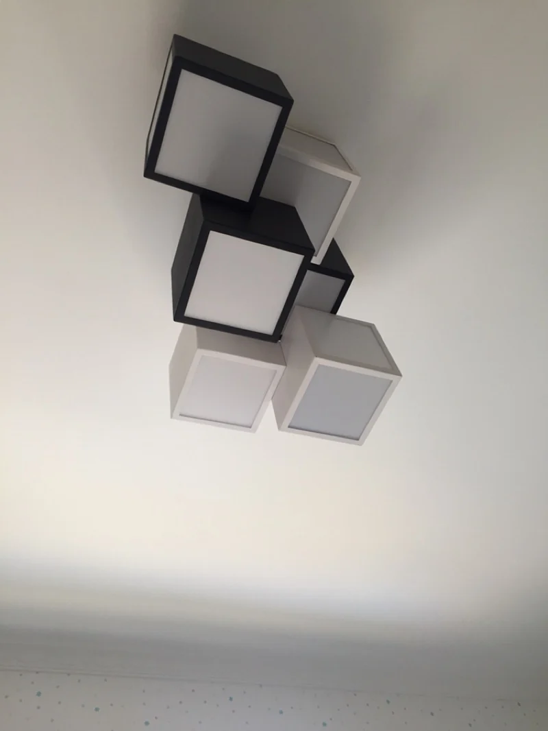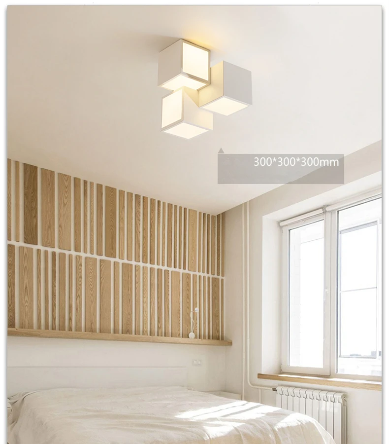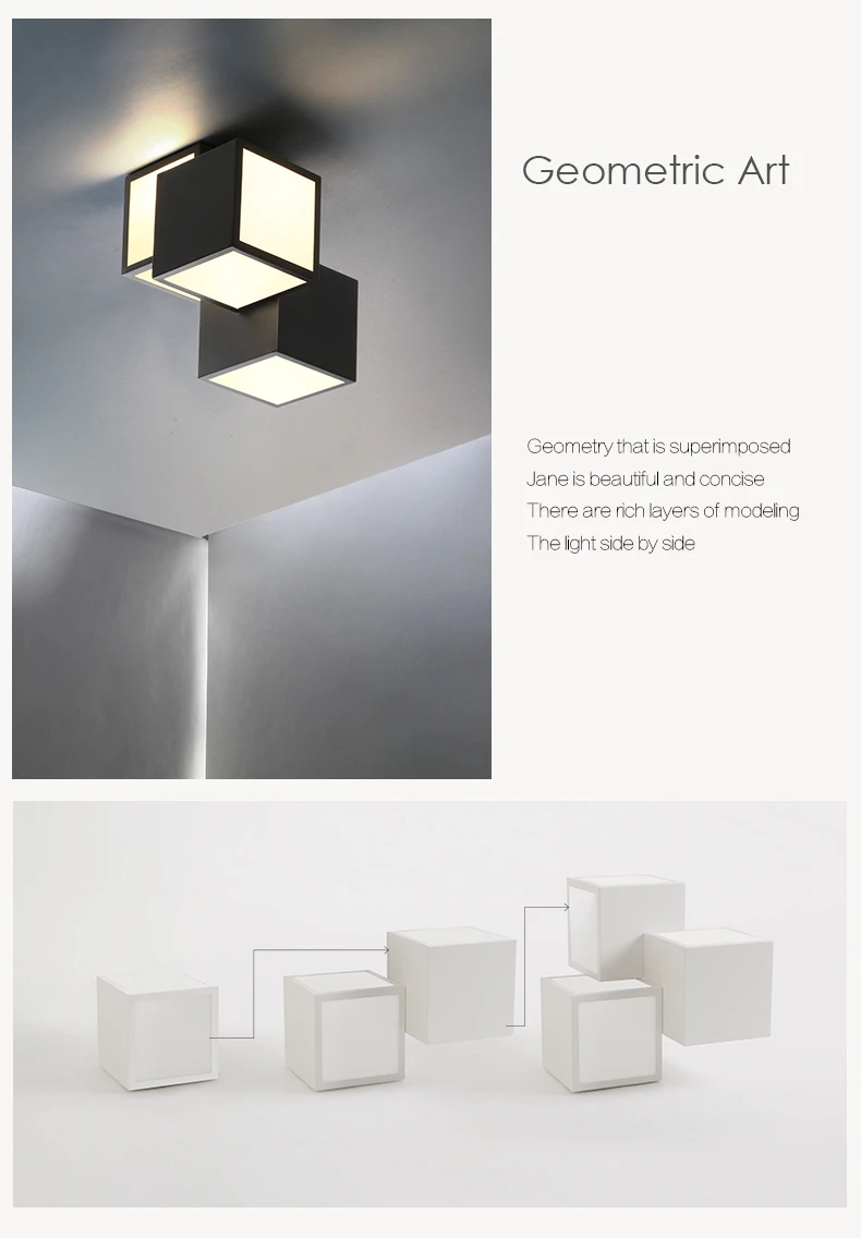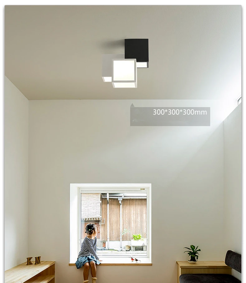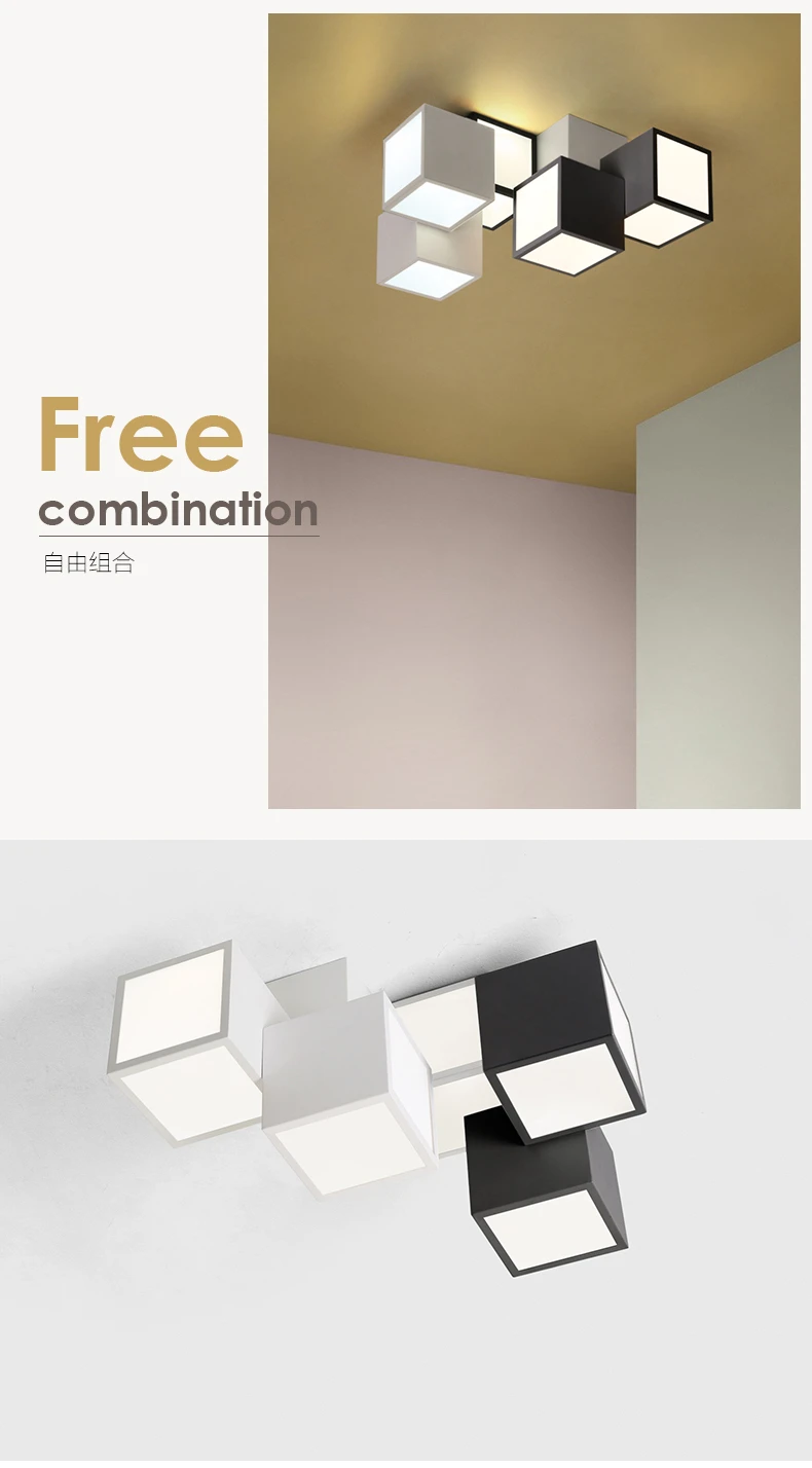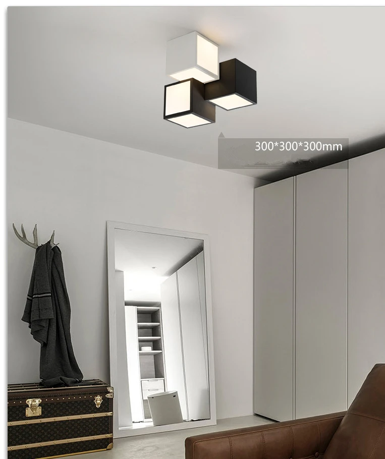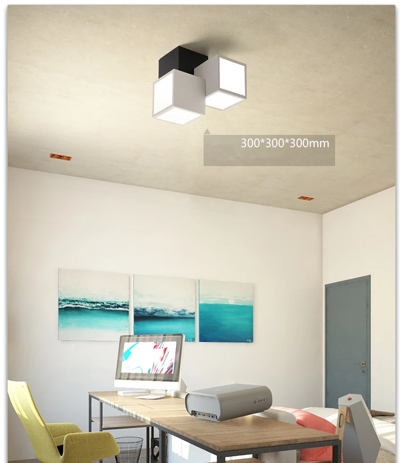 Name: Modern Creative 3 Cubes Light Led Luminaria Ceiling Light Paint White / Black Metal Remote Control Dimmable Led Ceiling Lamp;
