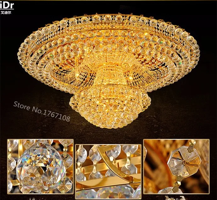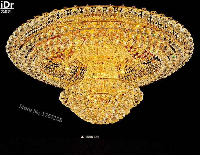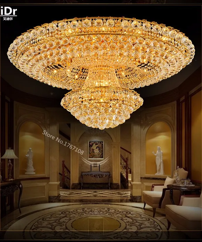 circular golden living room atmosphere Lobby Restaurant Crystal Luxury Hotel Dia1000mm Ceiling Lights Luxury lamp