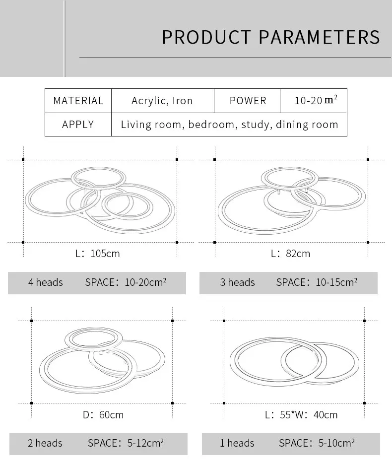 L105CM 4rings, L82CM 3rings,L60cm 2rings,L40cm 1ring