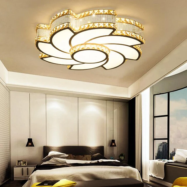 Best Price New luxury atmosphere crystal living room lamp round led bedroom lamp iron art acrylic study hall ceiling lamp led lighting lamp