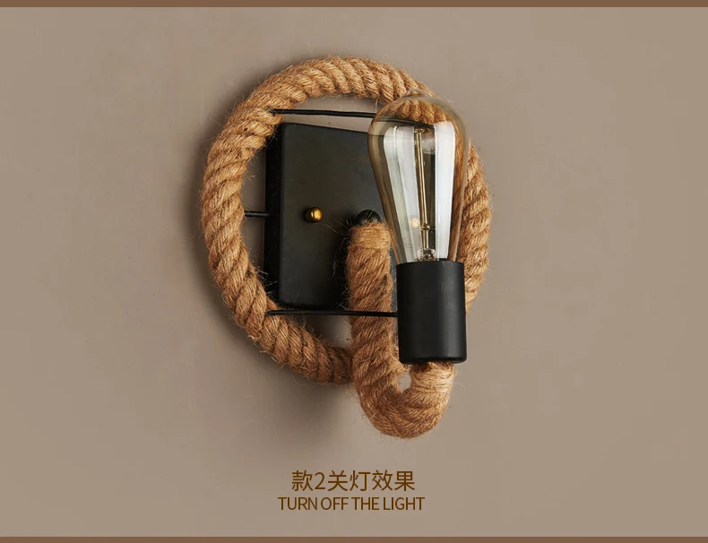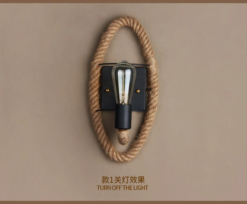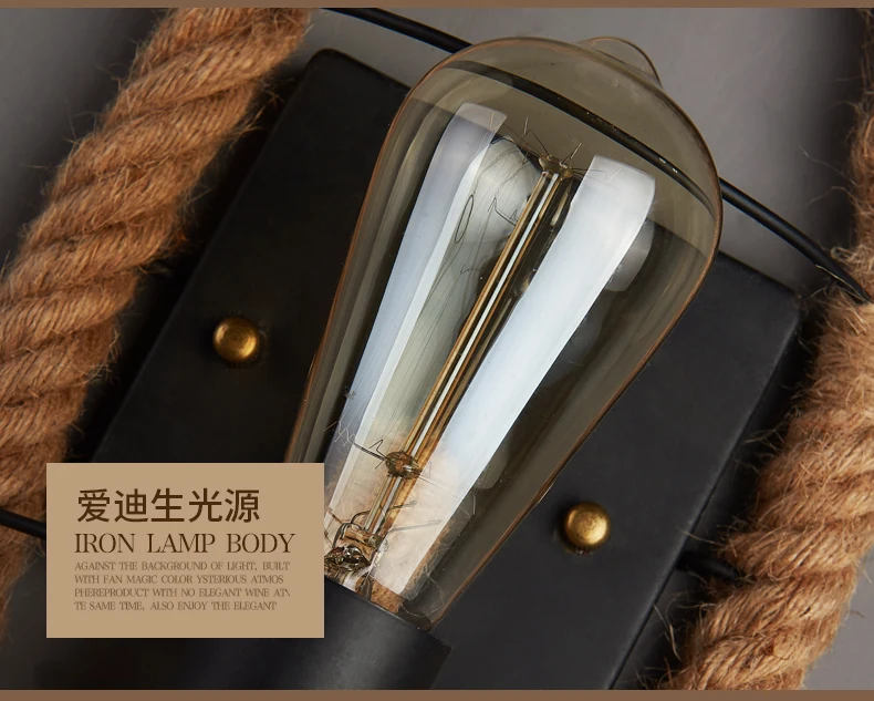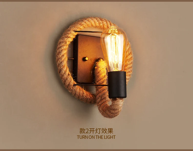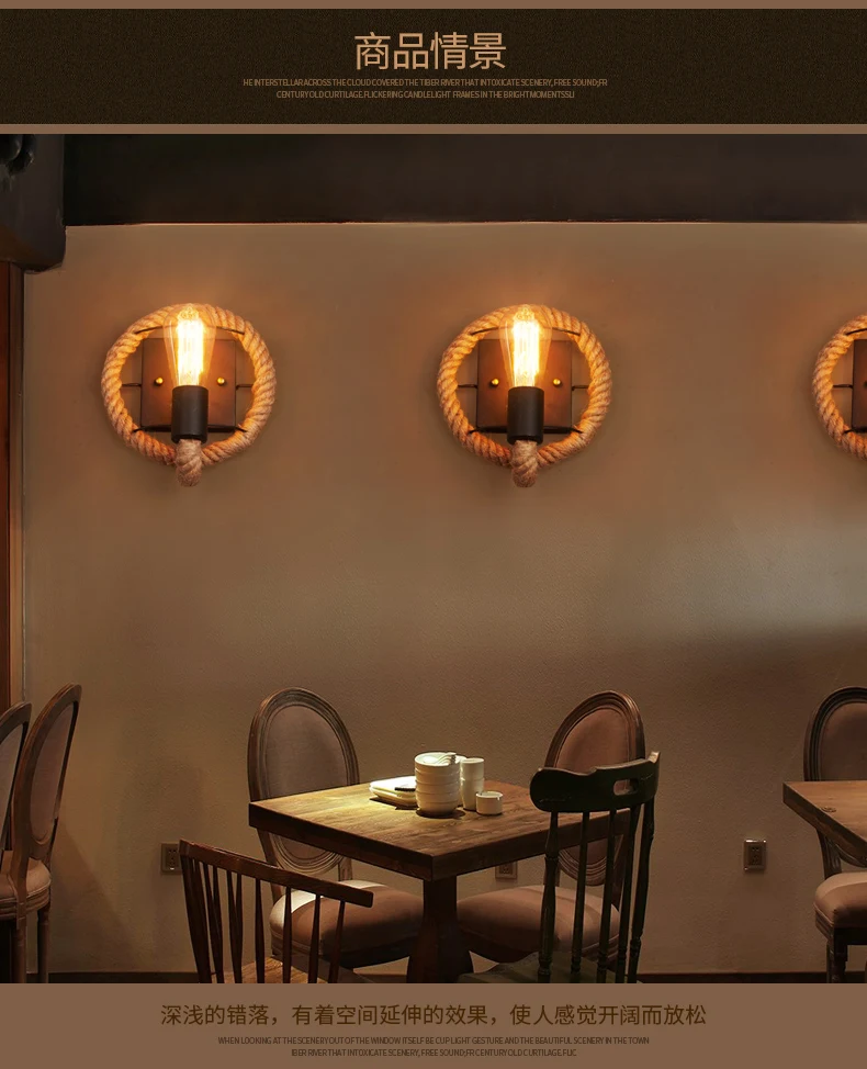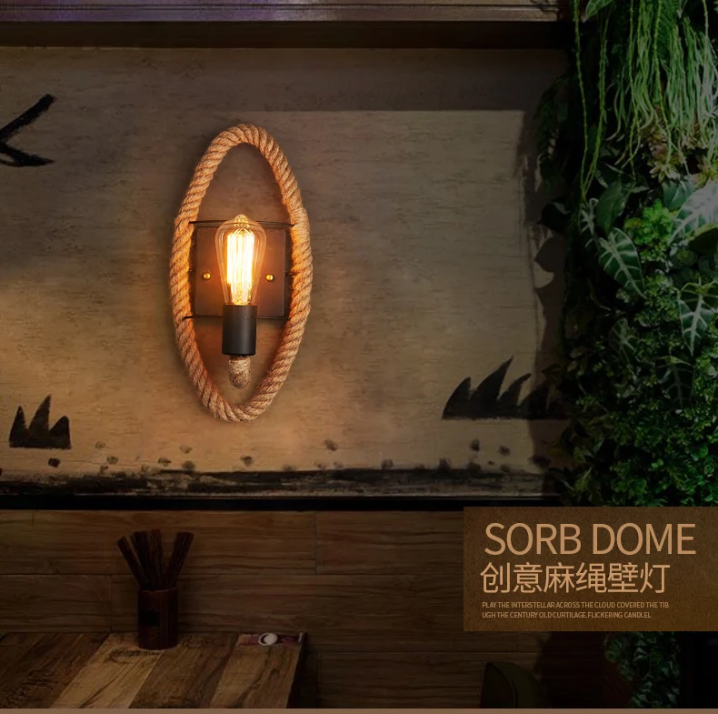 Lowered American Retro Round Rope Hemp Rope Edison Bulb Wall Light Aisle Balcony Stairs Bar Coffee Shop Wandlamp Iron Wall Art Wall Lamp