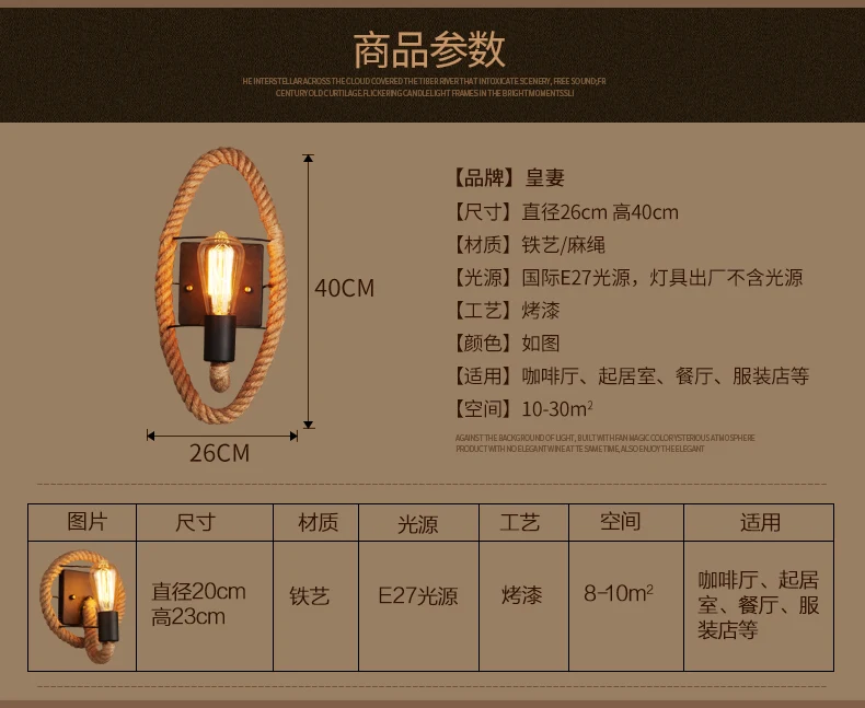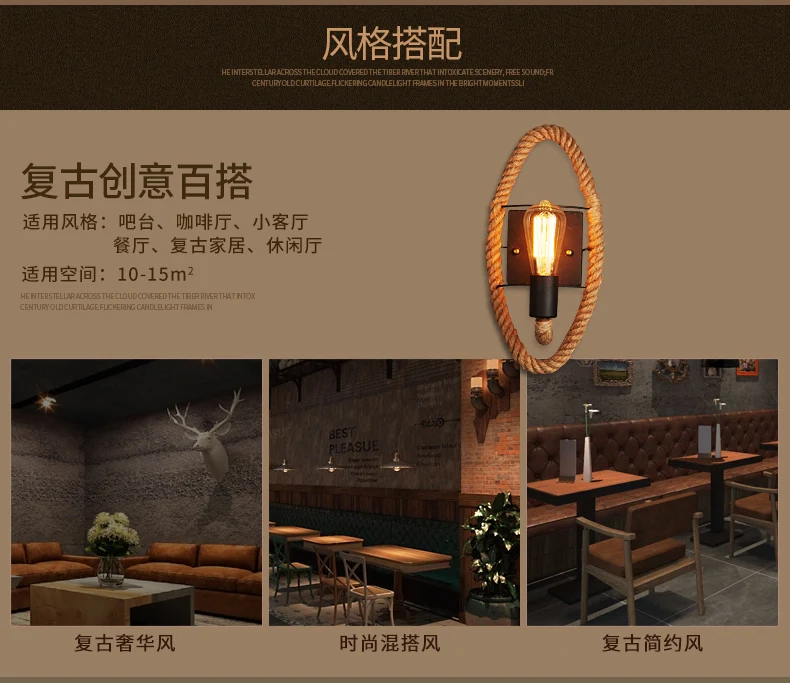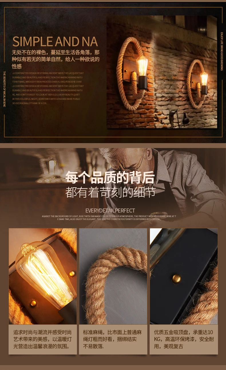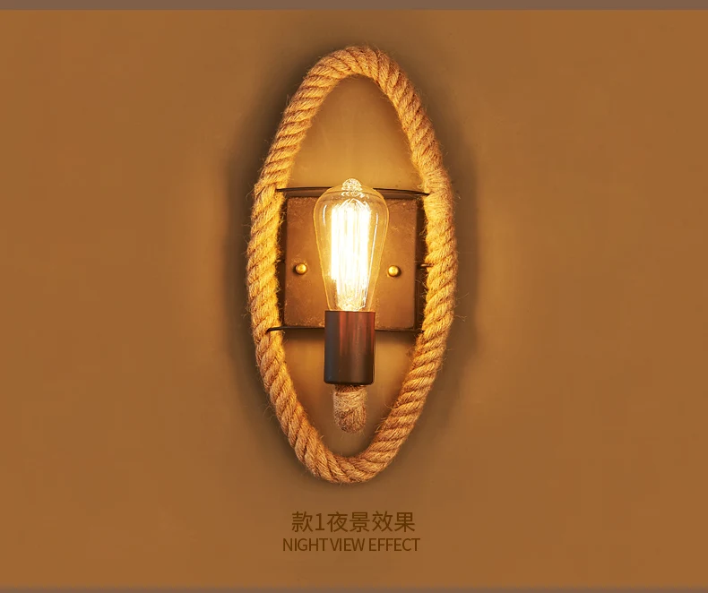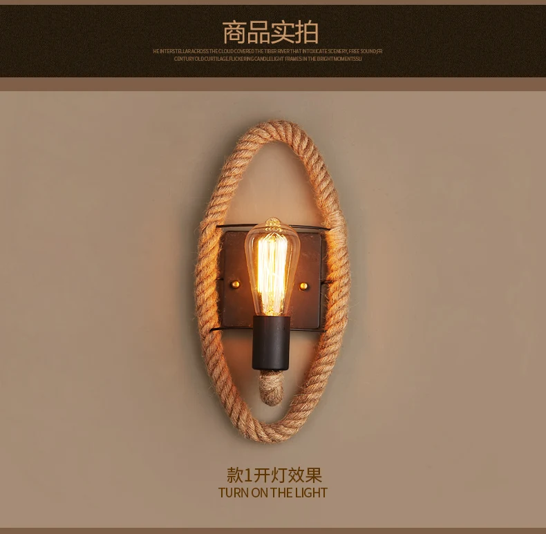Lowered American Retro Round Rope Hemp Rope Edison Bulb Wall Light Aisle Balcony Stairs Bar Coffee Shop Wandlamp Iron Wall Art Wall Lamp
