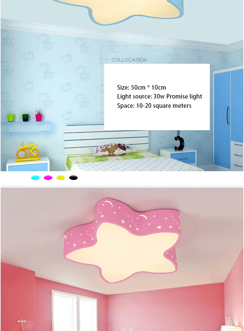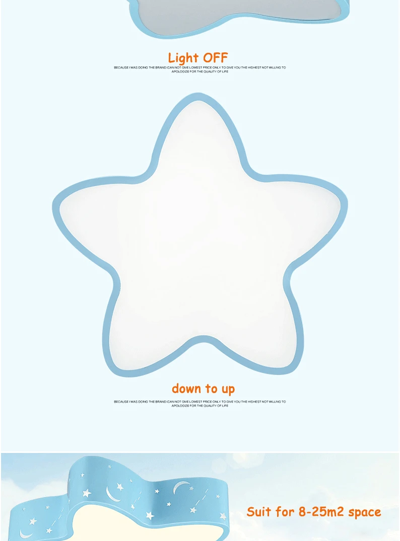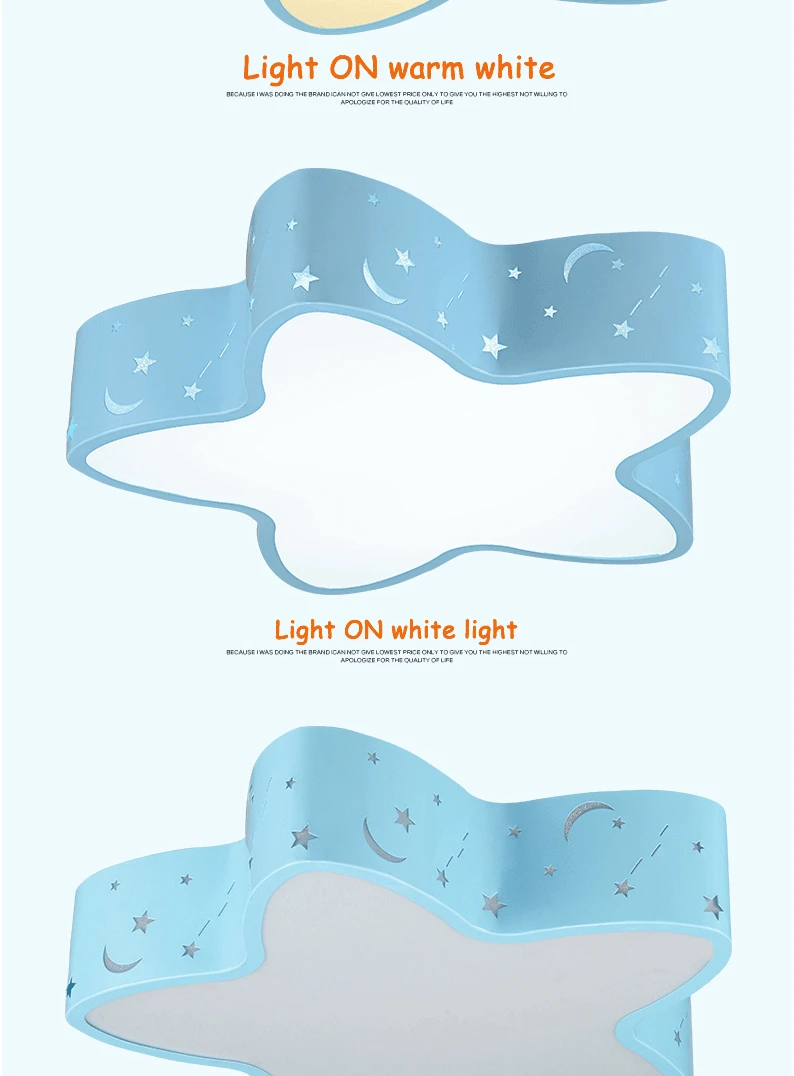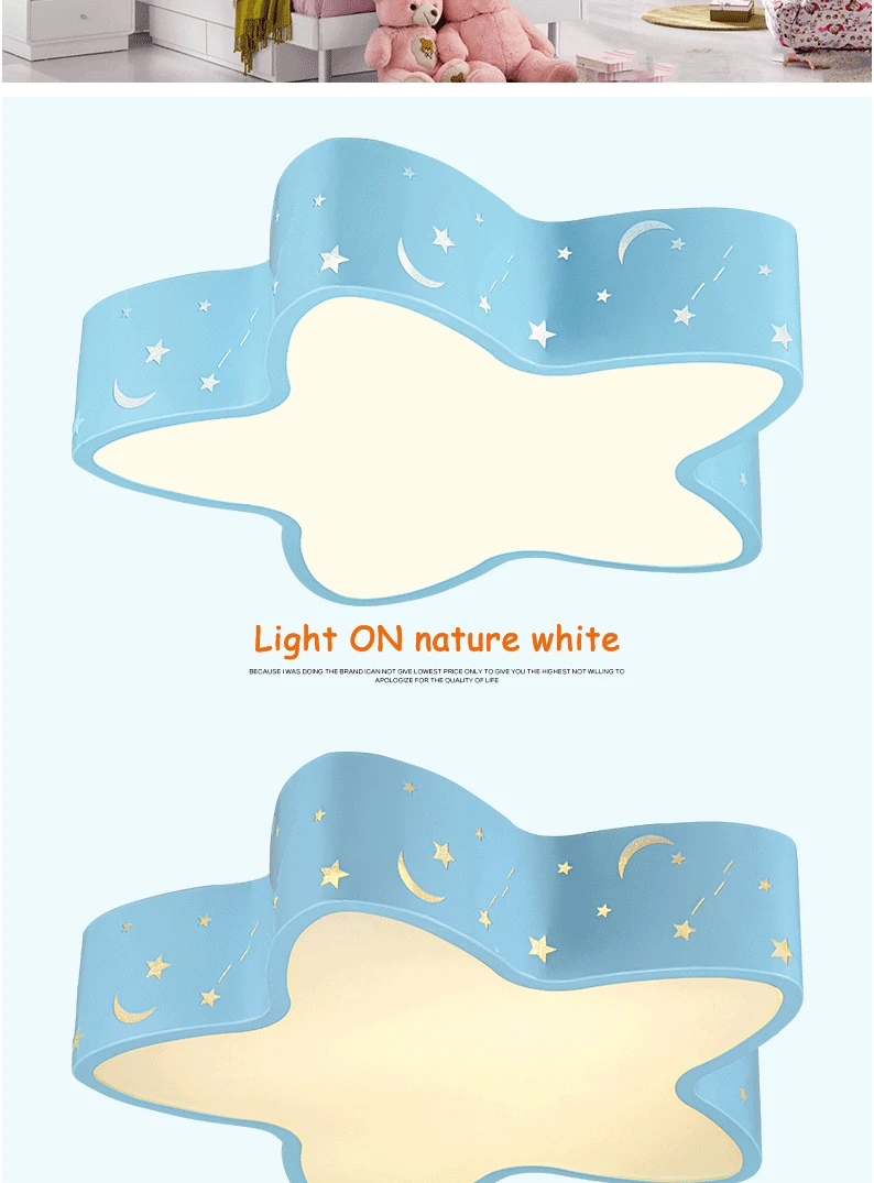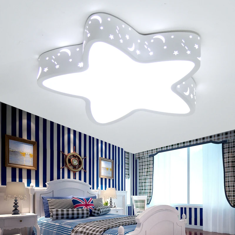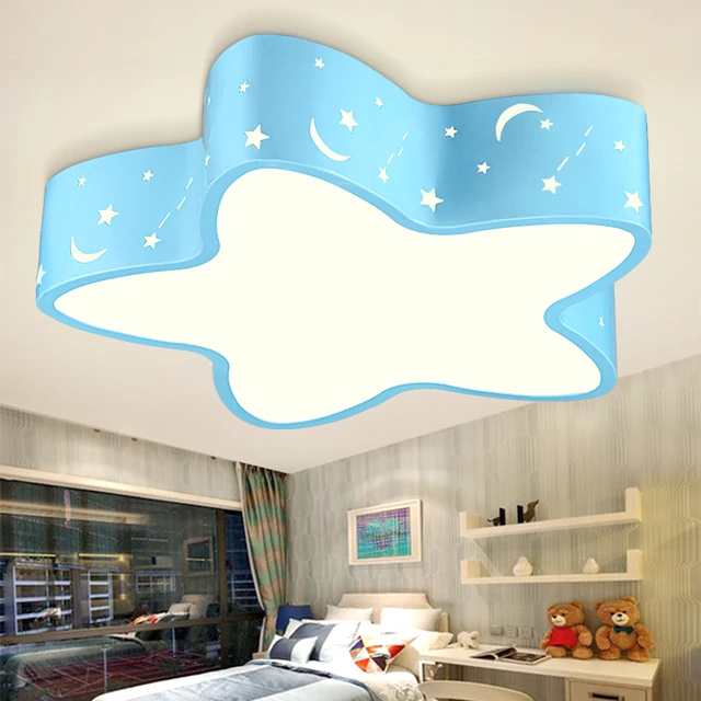 Cut Price Modern brief blue iron children bedroom ceiling light home deco hollow five-pointed star moon star acrylic LED ceiling lamp