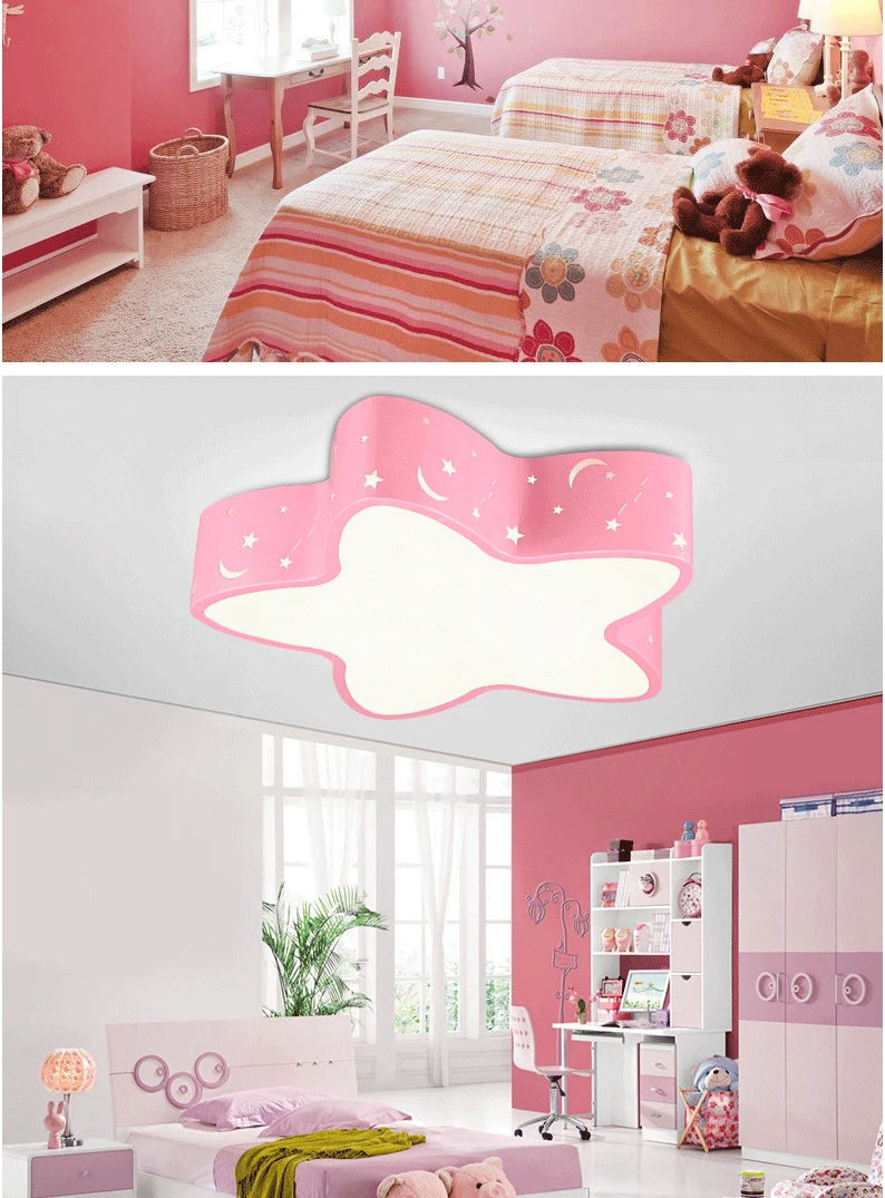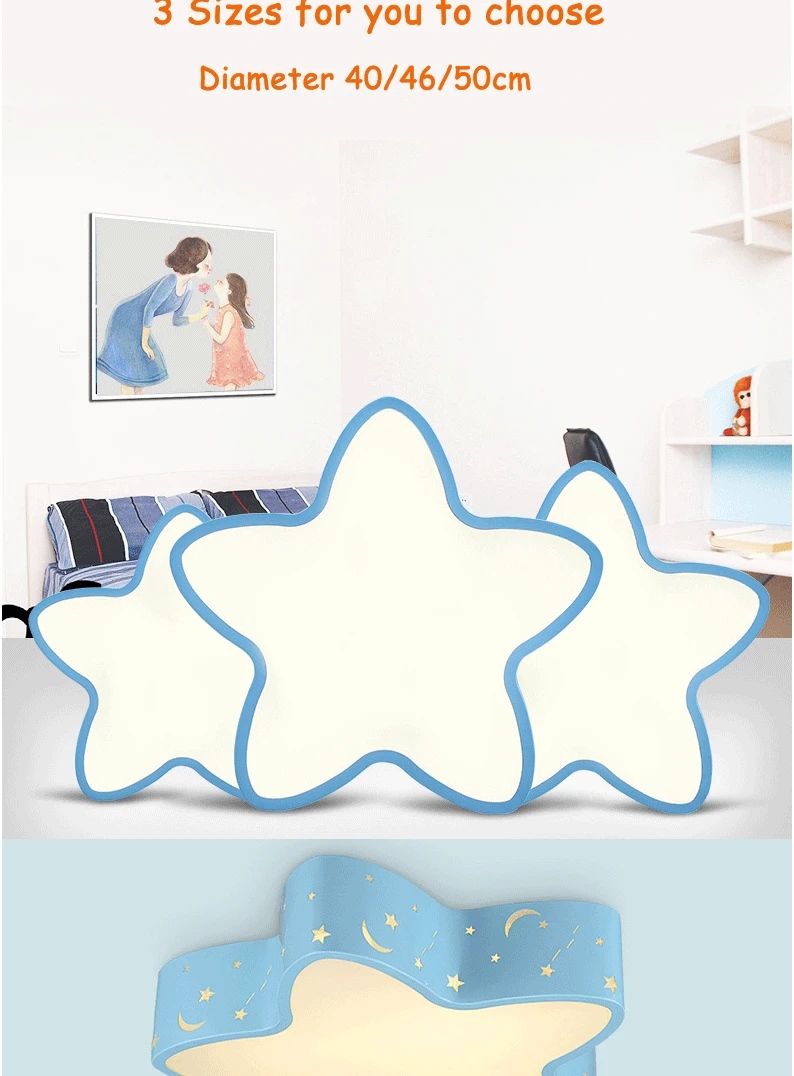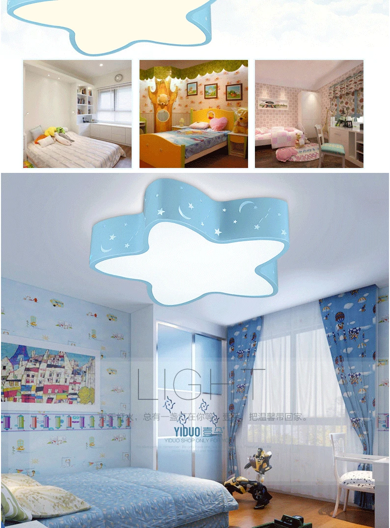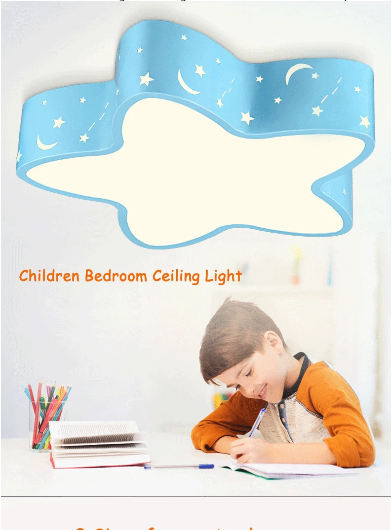 Modern brief blue hollow iron children bedroom ceiling light fixture home deco five-pointed star moon star acrylic LED ceiling lamp