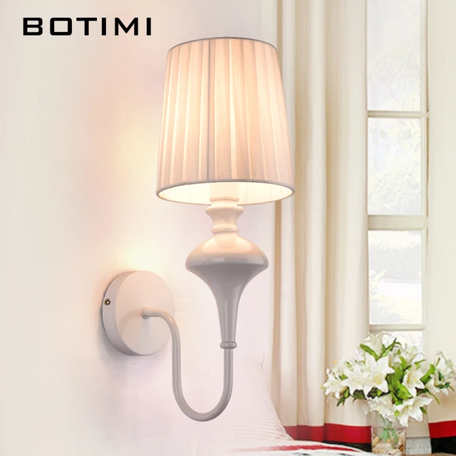 For Sale BOTIMI Modern Wall Lamp Hotel Lighting Fabric Lampshade Wall Sconce For Corridor Balcony Bedroom White Black Bedside Lamps