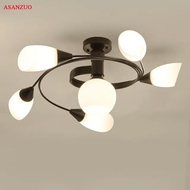 Modern LED Chandelier Ceiling Lamp Iron Indoor Luminaria Light Fixture American Living Room Bedroom Glass Ceiling Lights